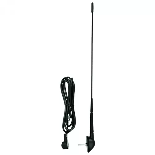 Ez a csepp alakú talppal rendelkező antenna nemcsak esztétikus, hanem rendkívül praktikus is. A ∅5 mm csavar biztosítja a stabil rögzítést, míg a 440 mm hosszú, 0-45°-ban dönthető rúd lehetővé teszi az optimális beállítást. A gumi burkolat tartós védelmet nyújt az időjárás viszontagságai ellen. A DIN csatlakozódugóval és a 2 méteres kábellel könnyen csatlakoztatható a jármű rádiórendszeréhez, garantálva a kristálytiszta vételt.