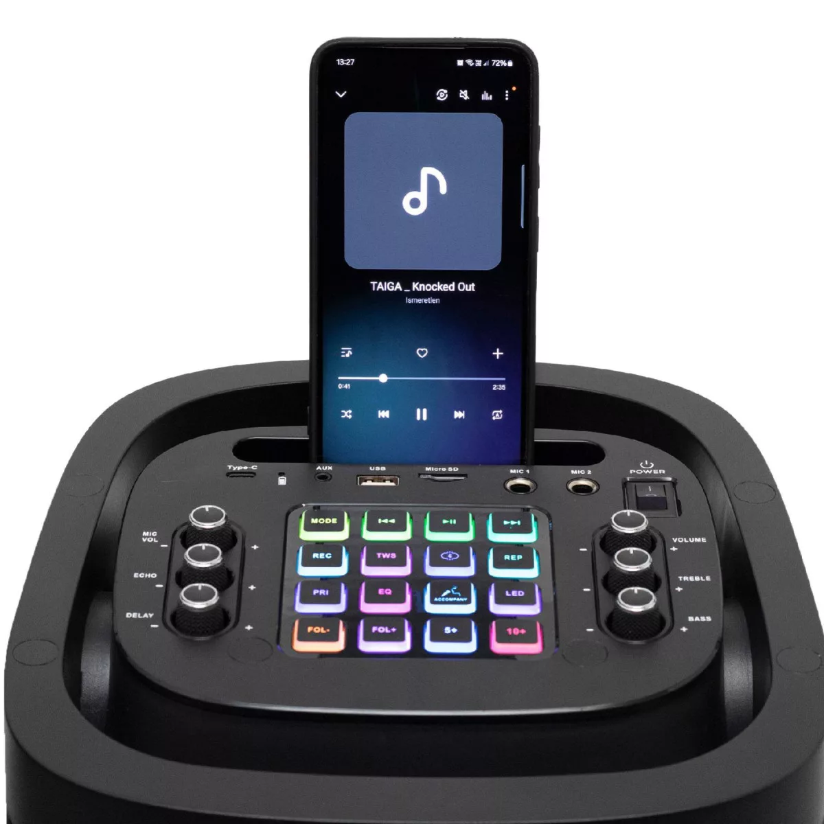A két mikrofon csatlakozó lehetőséget biztosít arra, hogy közös éneklésben vagy akár egy karaoke versenyben is részt vegyen. A visszhangosító funkció profi hatást kelt, míg a KARAOKE funkció elnyomja az eredeti énekes hangját, így a felhasználók saját előadásukat élvezhetik. Továbbá a mikrofonok hangja rögzíthető USB/microSD tárolóra, így az emlékezetes pillanatokat később is visszahallgathatja.