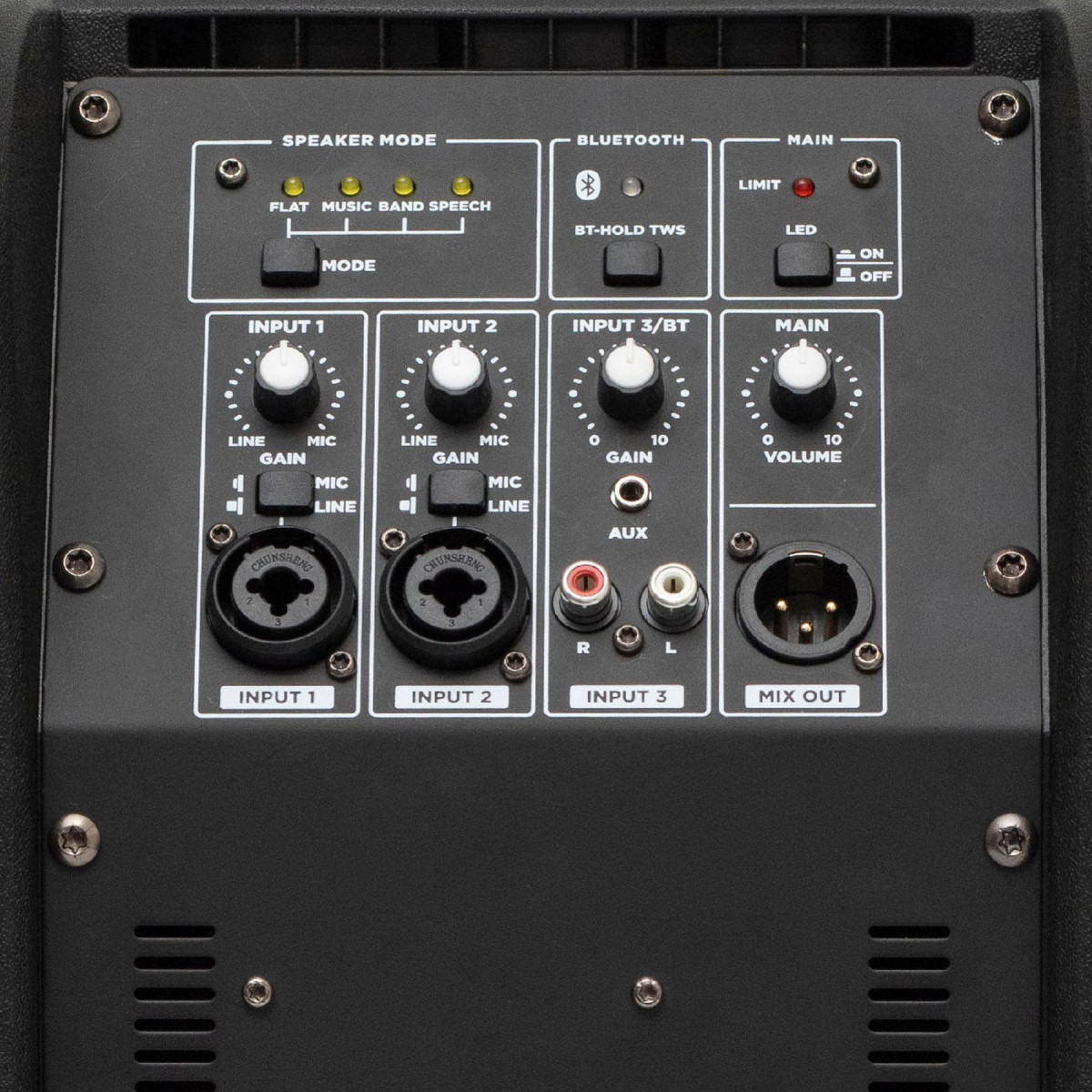 Ez a 2-utas, aktív bass-reflex hangdoboz öt integrált hangszóróval dolgozik összehangoltan: négy 2”-os neodymium szélessávú hangszóró gondoskodik a tiszta közép- és magas hangokról, míg a 8”-os nagy hangtekerccsel szerelt mélysugárzó felel az ütős basszusért. A hangképet a beépített DSP hangprocesszor optimalizálja, négy választható üzemmóddal a különböző alkalmazási környezetekhez.