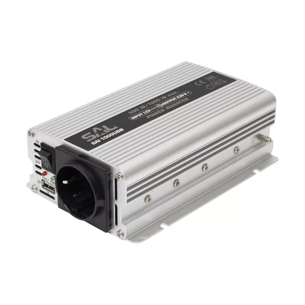 SAL SAI 1000USB feszültségátalakító, 500 W, inverter, 500 mA USB töltő, gyermekzár