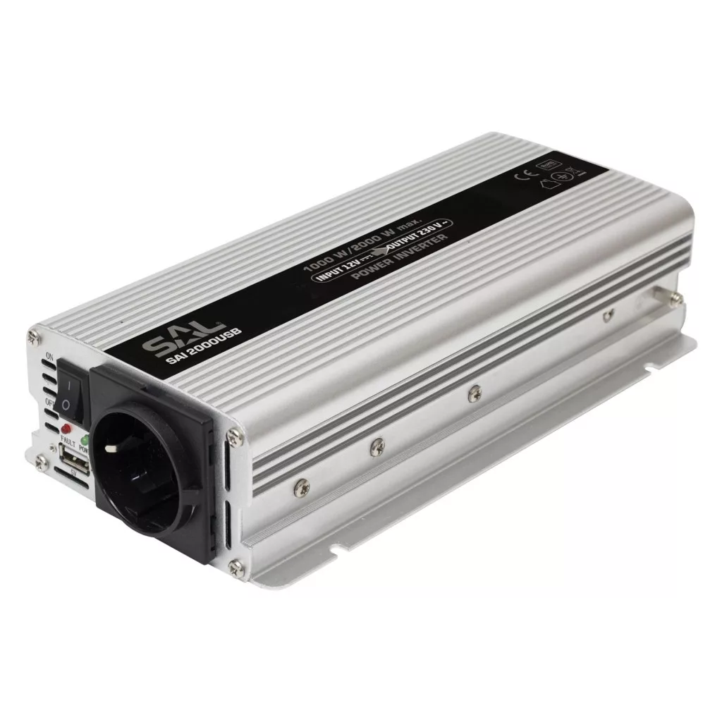 SAL SAI 2000USB feszültségátalakító, 1000 W, inverter, 500 mA USB töltő, gyermekzár
