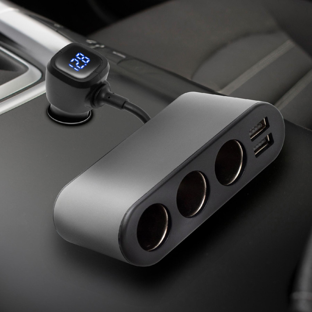 SAL SAU80W autós feszültségelosztó és USB töltő, 3.4A USB töltő, max.80Watt, fém burkolat, Voltmérő, autó-akkumulátor állapotának ellenőrzése, 12/24V járművekhez