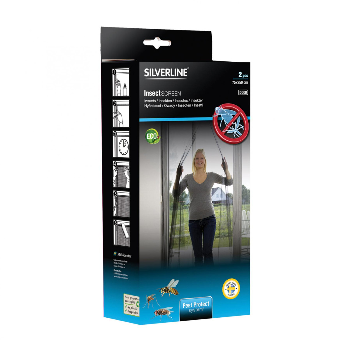 A Silverline IN 22455 szúnyogháló ajtóra egy praktikus és hatékony megoldás, amely lehetővé teszi, hogy az ajtót nyitva tartva élvezhesse a friss levegőt, miközben távol tartja a kellemetlen rovarokat. Az InsectScreen Door sűrű szövésű, antracitszürke poliészter hálója hatékony védelmet nyújt a repülő rovarok ellen, miközben elegáns megjelenésével tökéletesen illeszkedik otthona stílusához.