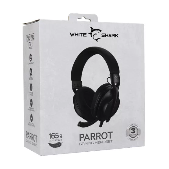 White Shark GH-2440B PARROT gamer fejhallgató mikrofonnal - fekete