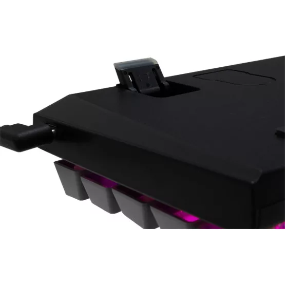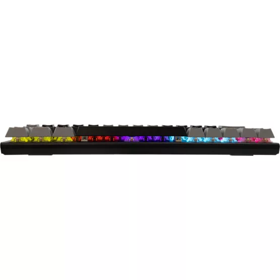 Magyar kiosztású billentyűzet, Kapcsolók típusa: mechanikus, Kapcsolók színe: kék, Kapcsolók száma: 63/64, Világítás: RGB, Csatlakozás: Type C - USB 2.0, Kábelhossz: 1.5m, Színe: fekete/szürke