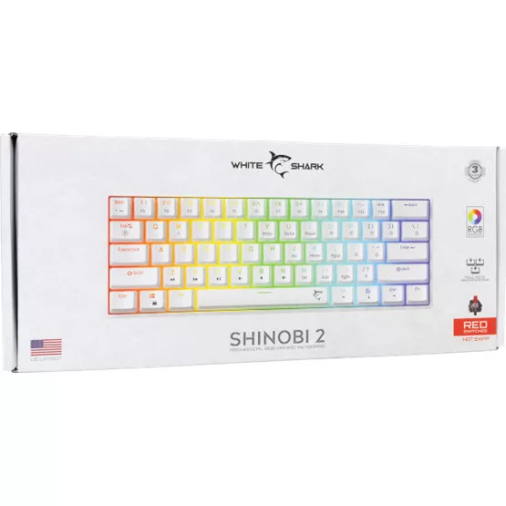 White Shark GK-004213V2-W/R-HU SHINOBI-2 vezetékes mechanikus gamer billentyűzet - fehér - HU /piros/