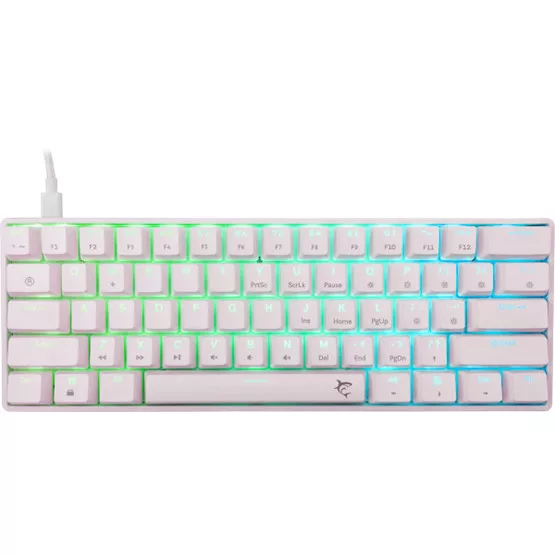 Magyar kiosztású billentyűzet, Kapcsolók típusa: mechanikus, Kapcsolók színe: kék, Kapcsolók száma: 61/62, Világítás: RGB, Csatlakozás: Type C - USB 2.0, Kábelhossz: 1.8m, Színe: fehér