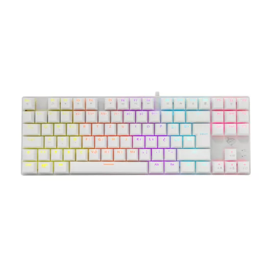 Szín: fehér, mechanikus, gamer billentyűzet, magyar kiosztással, 88 gomb, Kék switchek, Rainbow háttérvilágítás. Igazi társ a nagy játékosoknak!