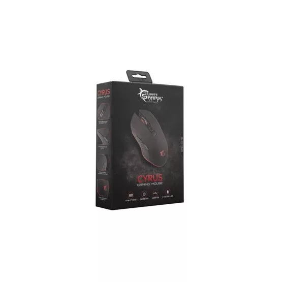 White Shark GM-3001 CYRUS gaming egér, fekete, 3200dpi. 6D – 6 gombos kivitel, Chipset Instant:A704, Optikai szenzor, Felbontás:1200/ 1600/ 2400/ 3200, Háttérfény: 4 szín, gumírozott borítás. Kábelhossz:1,8m. Szövet borítású kábel.