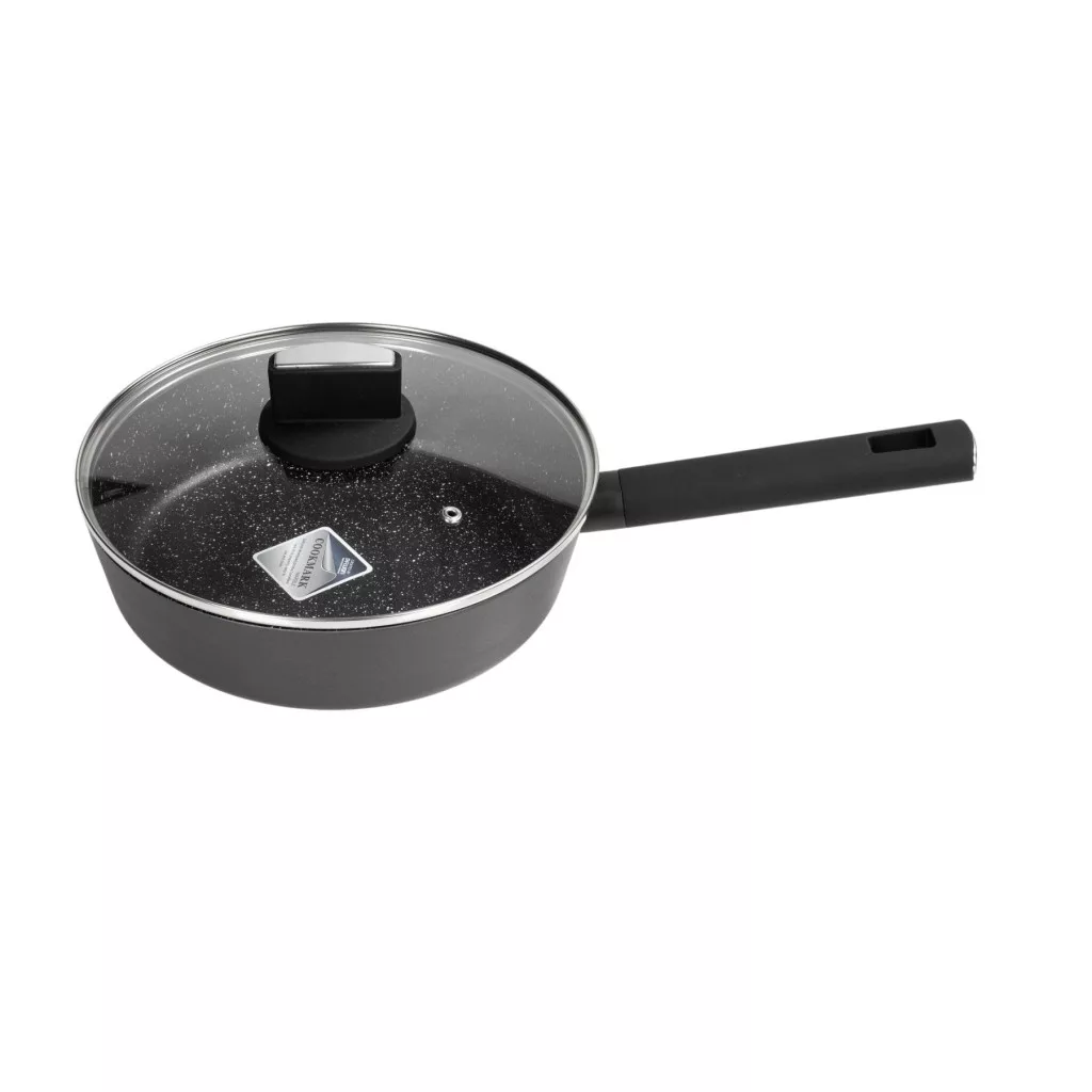 A Zilan ZLN0874 Spotty Chef magasfalú serpenyő fedővel kiváló megoldást nyújt a mindennapi főzéshez, hiszen 24 cm átmérővel, 2,4 literes űrtartalommal és magas falú kialakítással készült. A serpenyő tapadásmentes márvány belső bevonata lehetővé teszi az egyenletes sütést-főzést, miközben kevesebb zsiradék felhasználásával is ízletes ételek készíthetők.