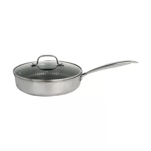A Zilan ZLN9679 Hexachef serpenyő fedővel erre kínál modern és megbízható megoldást, hiszen 26 cm átmérőjével, 3,2 literes űrtartalmával és háromrétegű szerkezetével kiválóan alkalmas mindennapi és kreatív konyhai feladatokra egyaránt. Az alumínium maggal és két rozsdamentes acél réteggel készült edény egyenletes hőelosztást biztosít, míg a hatszögletű hibrid tapadásmentes belső felület új szintre emeli a sütés-főzés kényelmét.