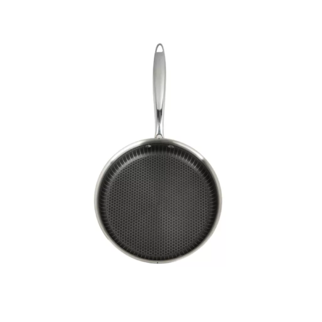 A különleges hexagon mintázatú hibrid bevonat hatékonyan csökkenti a letapadás esélyét, miközben megőrzi az alapanyagok természetes állagát és ízét. A karcálló kialakítás hosszú élettartamot biztosít, így a serpenyő intenzív használat mellett is megbízható társ marad. A 26 × 7 cm-es méret ideális húsok pirításához, zöldségek sütéséhez vagy akár szaftos egytálételek elkészítéséhez.