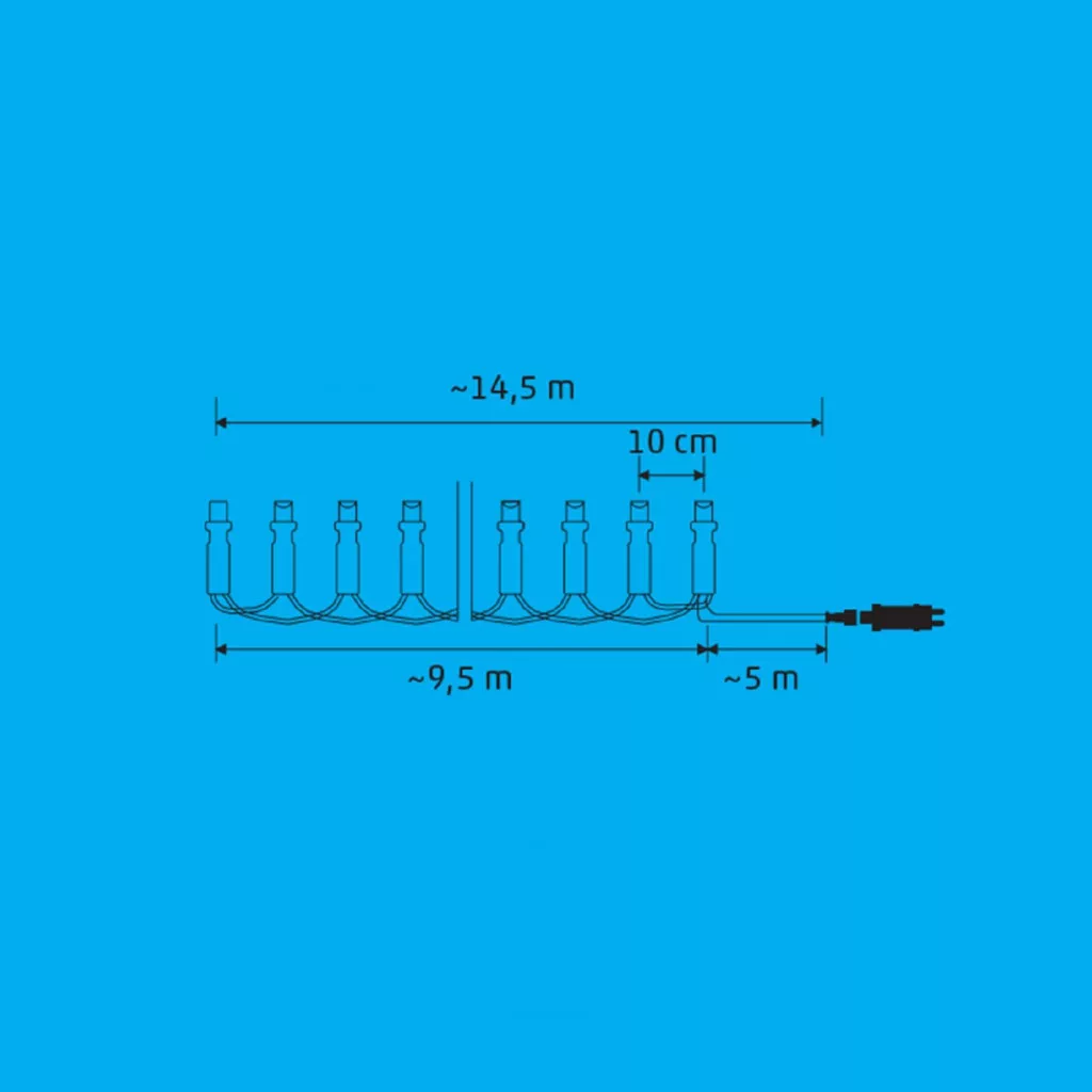 14,5 m (9,5 m füzérhossz + 5 m tápvezeték)