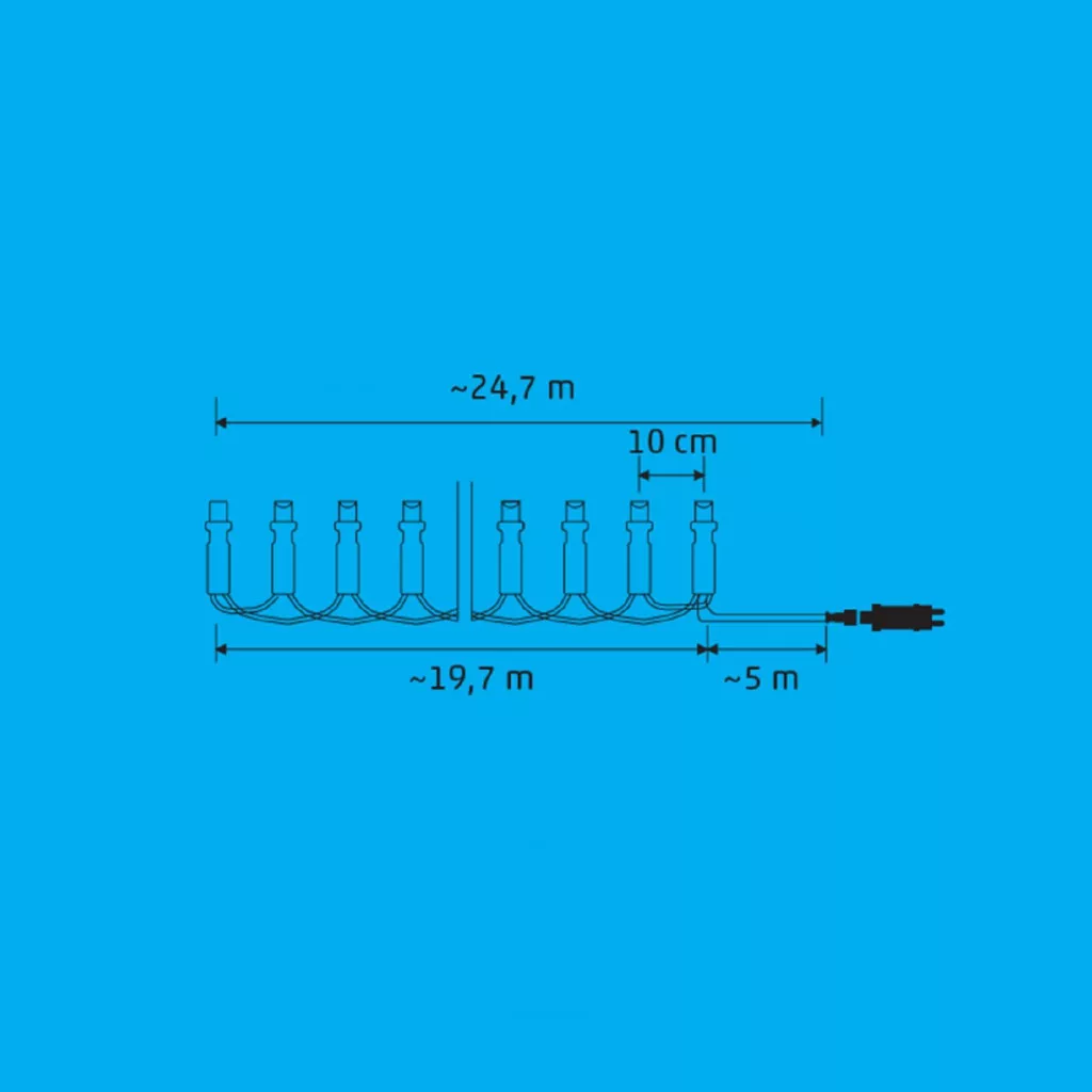 24,7 m (19,7 m füzérhossz + 5 m tápvezeték)