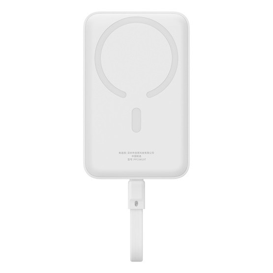 Baseus Magnetic Mini vezeték nélküli gyorstöltő powerbank 10000mAh, 30W, beépített USB Type-C kábel, fehér