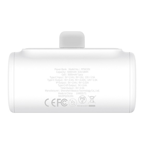 Baseus Compact gyorstöltő powerbank 5000 mAh, 20W iPhone csatlakozóval, fehér