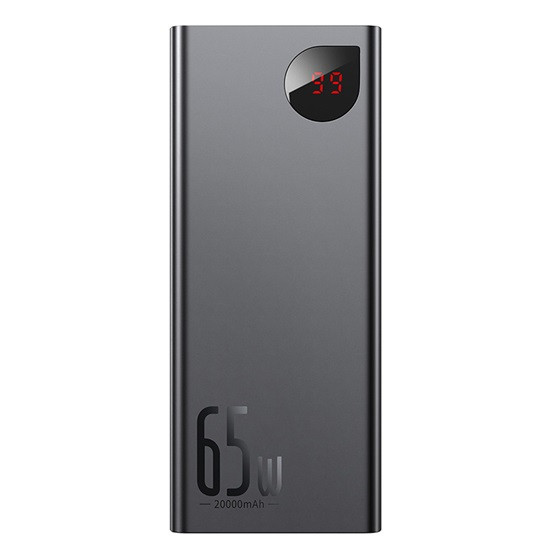 Baseus Adaman Metal gyorstöltő powerbank 20000 mAh, 65W, fekete + 3A USB Type-C, 30cm kábel