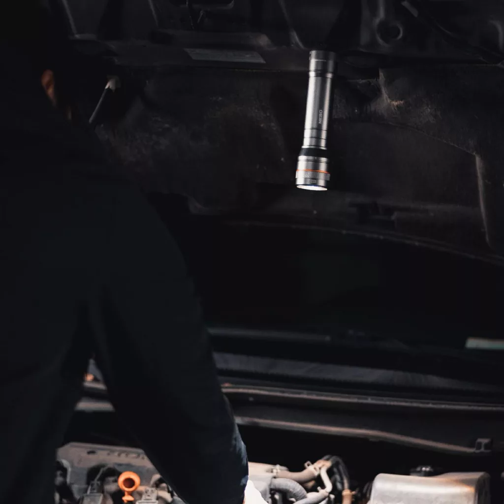A NEWTON 1000 zseblámpa 4 darab 1,5 V (AAA) elemmel működik, amelyeket a csomag tartalmaz. A zseblámpa kompakt méretének (összetolva 18 x ∅4,6 cm) köszönhetően könnyen magával viheti, így mindig kéznél lesz a szükséges fényforrás.